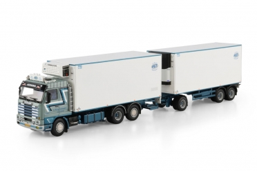 WSI 01-4563 SCANIA 3 SERIES STREAMLINE RIGED REEFER TRUCK 6X2 TAG AXLE RIGED REEFER DRAWBAR TURNTABLE TRAILER - 6 AXLE HGT