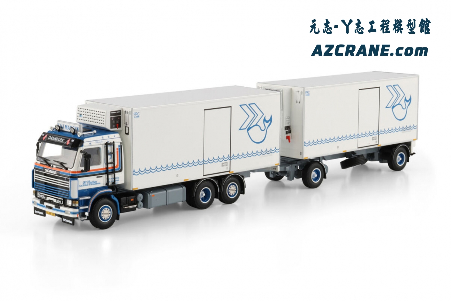 WSI 001-4637 SCANIA 3 SERIES RIGED REEFER TRUCK 6X2 TAG AXLE RIGED REEFER DRAWBAR TURNTABLE TRAILER - 5 AXLE Kaj Madsen