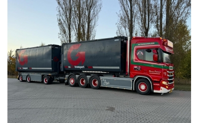 WSI 01-4922 SCANIA R HIGHLINE CR20H 8X4 RIGED TRUCK DRAWBAR WITH HOOKLIFT SYSTEM - 7 AXLE Ronnie Petersen