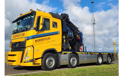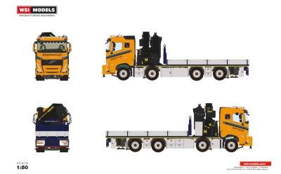 WSI 01-4960 VOLVO FH 5 SLEEPER CAB RIGED FLATBED TRUCK 8X2 TAG AXLE WITH PALFINGER PK 92002 SH + JIB Boekestijn