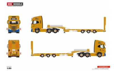 WSI 01-5053 IVECO S-WAY AS HIGH MY2024 6X2 TWIN STEER SEMI LOW LOADER WITH RAMPS - 3 AXLE Kors Hoogwerksystemen