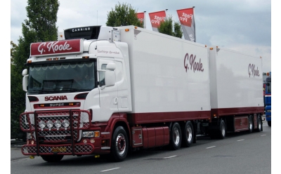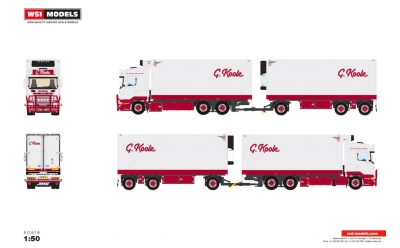 WSI 01-5074 SCANIA R5 HIGHLINE RIGED REEFER TRUCK DRAWBAR TRAILER G. Koole