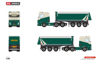WSI 01-5319 VOLVO FH AERO SLEEPER CAB 6X2 TWIN STEER NON STEERING TIPPER TRAILER - 3 AXLE DB Kiepers
