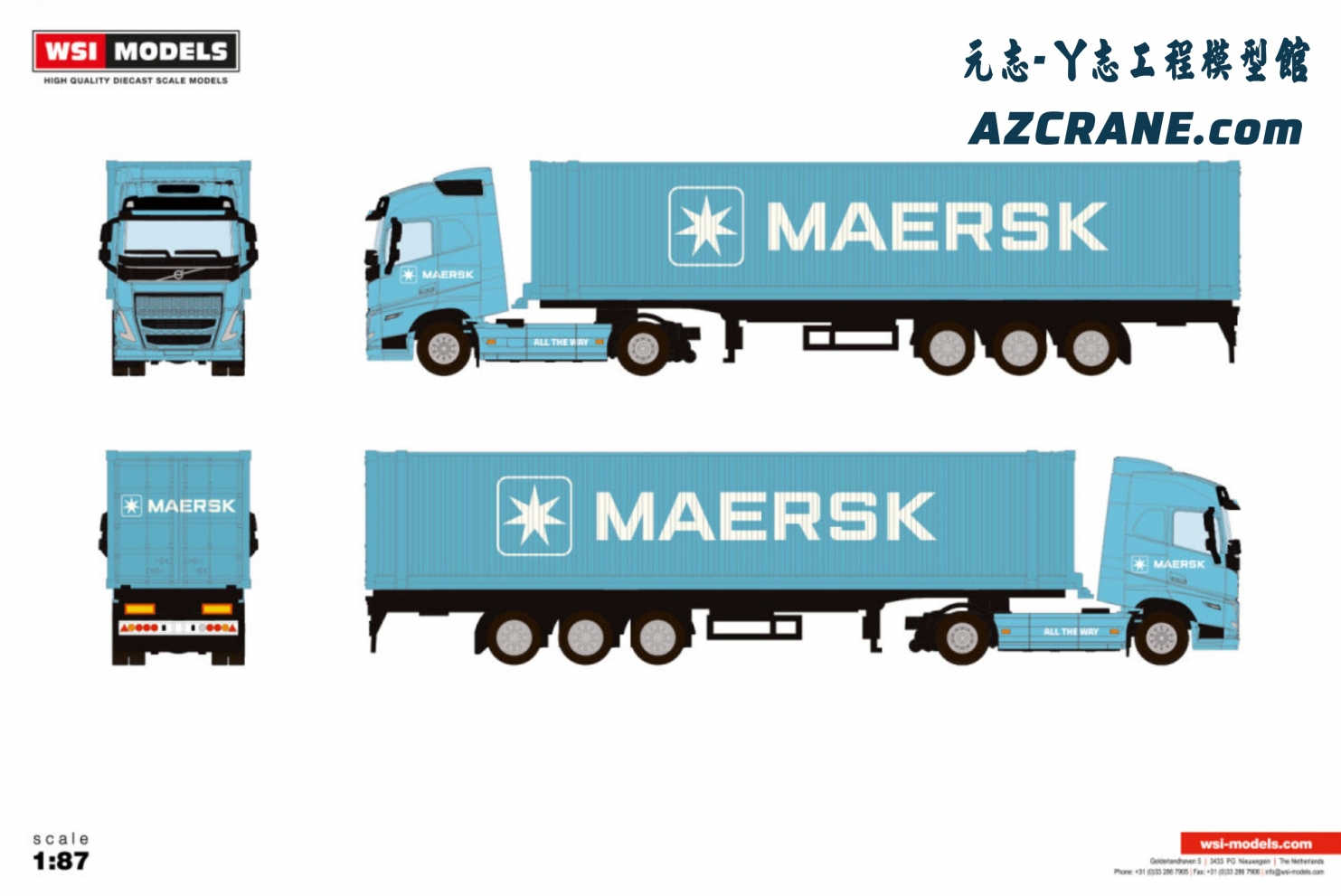 WSI 74-1002 VOLVO FH12 GLOBETROTTER XHSL 4X2 CONTAINER TRAILER 45 FT - 3 AXLE MAERSK Premium Line