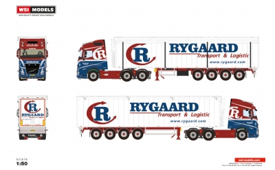 WSI 01-5161 VOLVO FH AERO GLOBETROTTER 6X2 TAG AXLE MOVING FLOOR TRAILER - 4 AXLE Rygaard