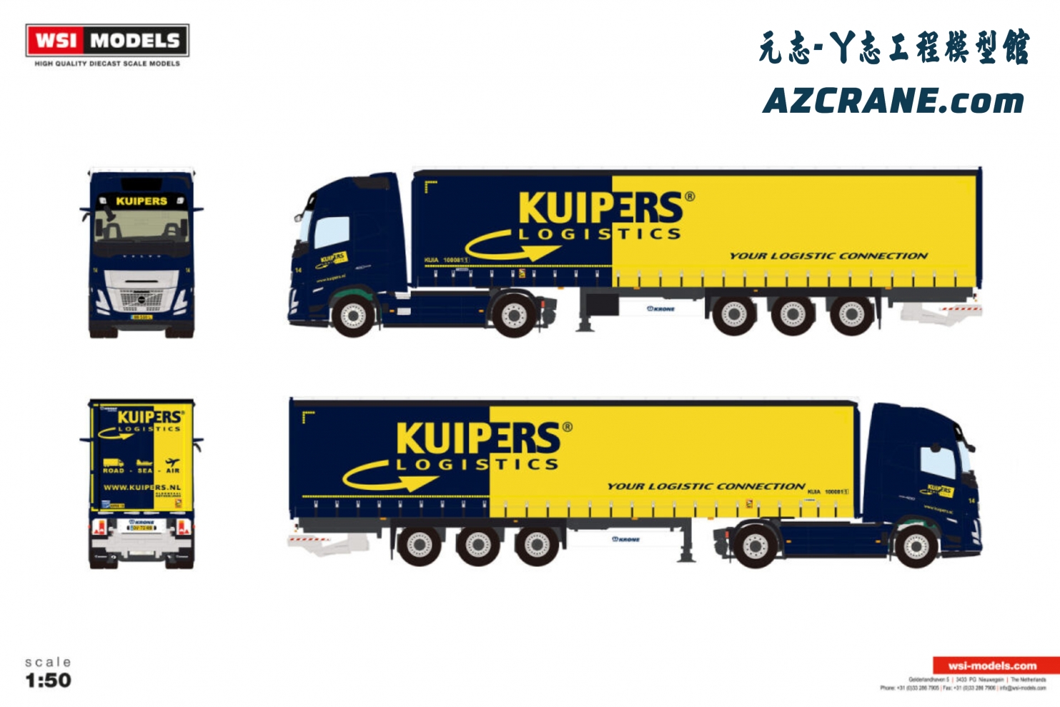 WSI 01-4948 VOLVO FH AERO GLOBETROTTER XL 4X2 CURTAINSIDE TRAILER - 3 AXLE Kuipers Logistics