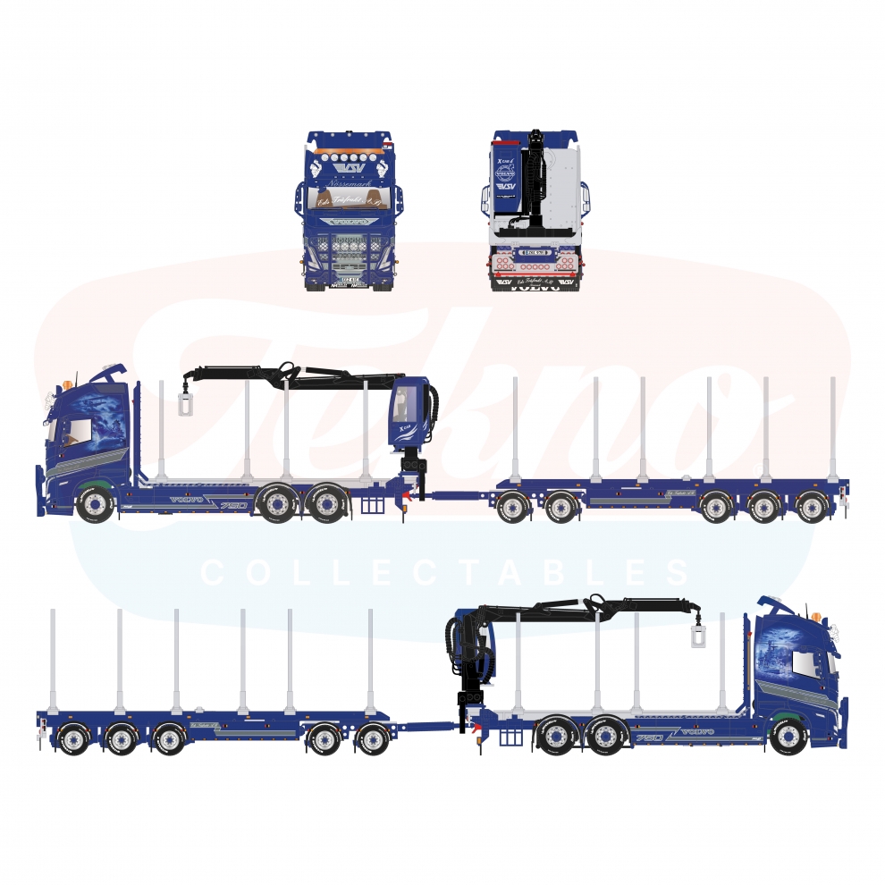 Tekno 89409 Volvo FH16 Globetrotter XL tractor unit with Swedish timber trailer Eds Trafrakt - VSV