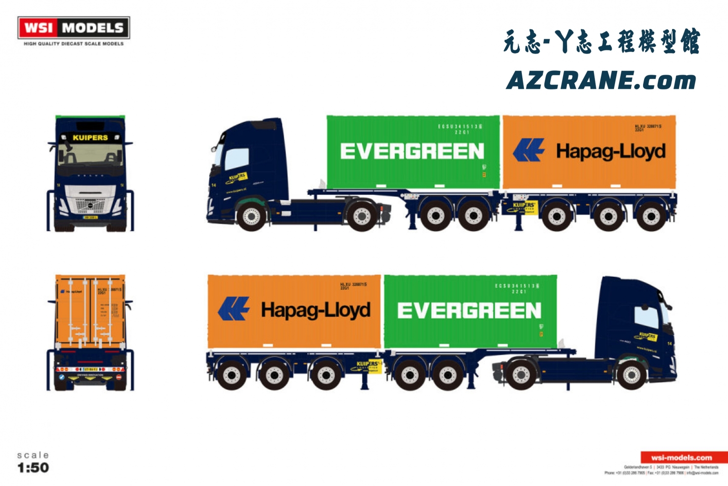 WSI 01-4949 VOLVO FH AERO GLOBETROTTER XL 4X2 2CONNECT COMBI TRAILER - 5 AXLE + 2X 20FT CONTAINER Kuipers Logistics