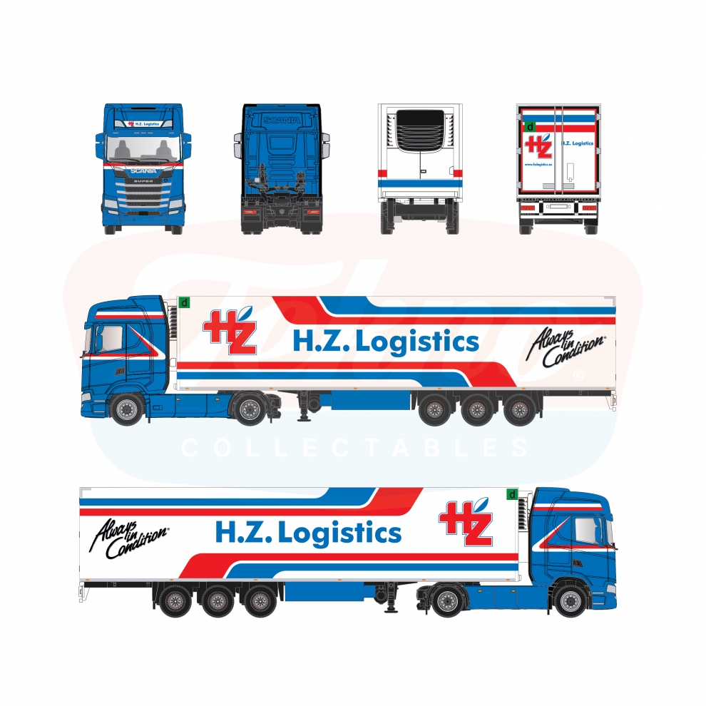Tekno 91772 Scania NGS Highline with 3-axle refrigerated semi-trailer HZ Logistics