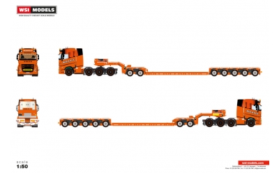 WSI 01-5052 VOLVO FH5 GLOBETROTTER XL 8X4 LOW LOADER WITH DOLLY 2 AXLE - 5 AXLE - WITHOUT LOAD Martle
