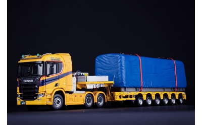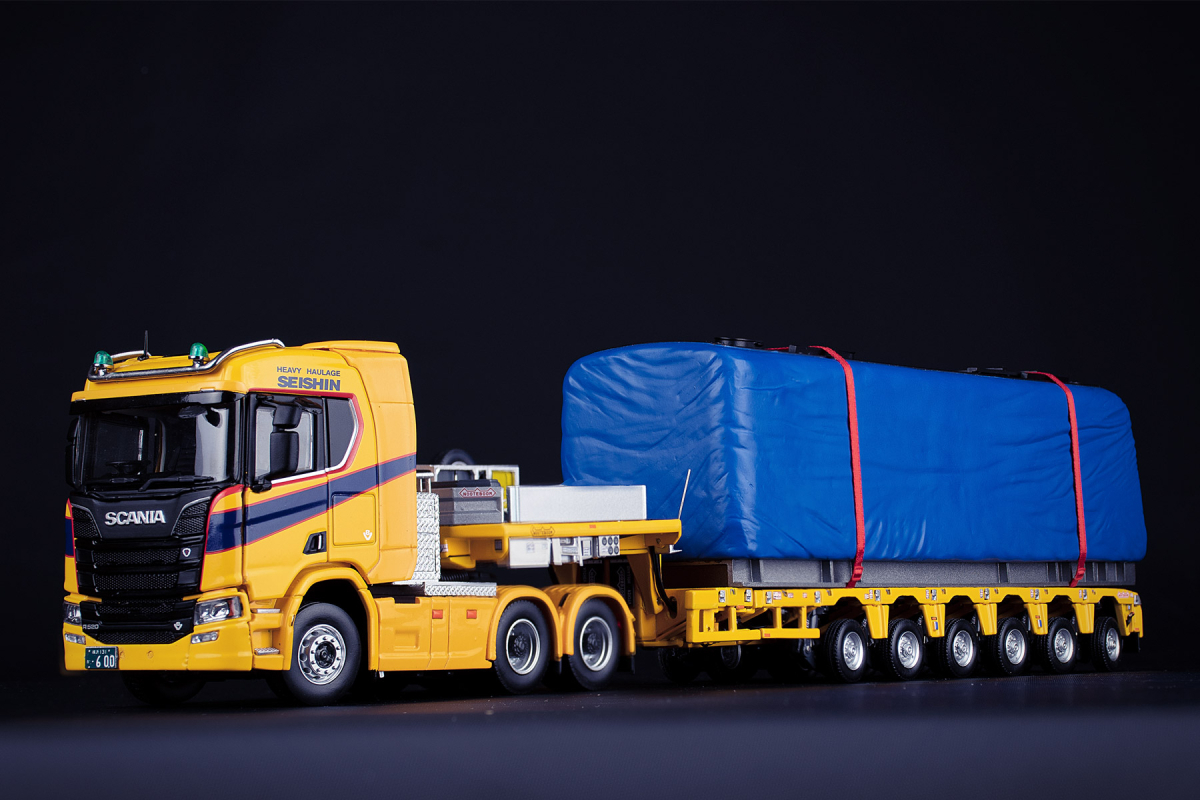 IMC 31-0257 日規 SCANIA R SERIES 6X4 WITH NOOTEBOOM 6-AXLE SEMI LOW LOADER WITH COVERED TRAIN LOAD SEISHIN