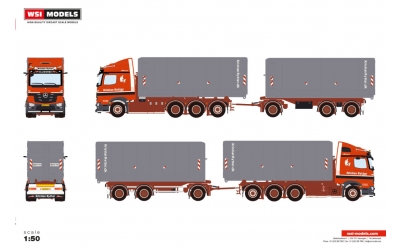 WSI 01-5124 MERCEDES-BENZ AROCS MP4 2.300MM STREAM SPACE 8X4 RIGED TRUCK DRAWBAR WITH HOOKLIFT SYSTEM - 7 AXLE + 2X 40M3 CONTAINER Kristian Rytter