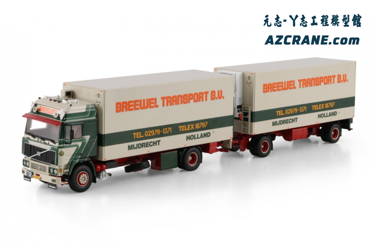 WSI 01-4600 VOLVO F12 GLOBETROTTER RIGED BOX TRUCK 4X2 RIGED BOX DRAWBAR TURNTABLE TRAILER - 2 AXLE Breewel