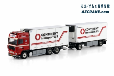WSI 01-4766 DAF XF 95 SUPER SPACE CAB RIGED REEFER TRUCK 6X2 TAG AXLE RIGED REEFER DRAWBAR TURNTABLE TRAILER - 5 AXLE Continent Transport A/S