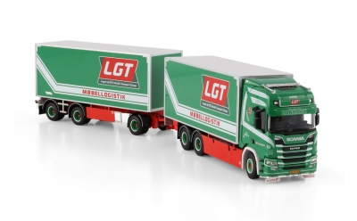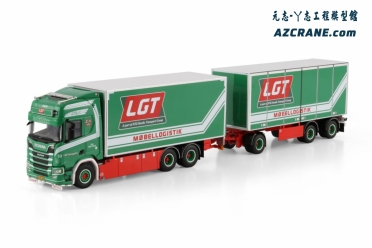 WSI 01-4837 SCANIA R HIGHLINE CR20H RIGED BOX TRUCK 6X2 TAG AXLE RIGED BOX DRAWBAR TURNTABLE TRAILER - 6 AXLE LM Transport LGT