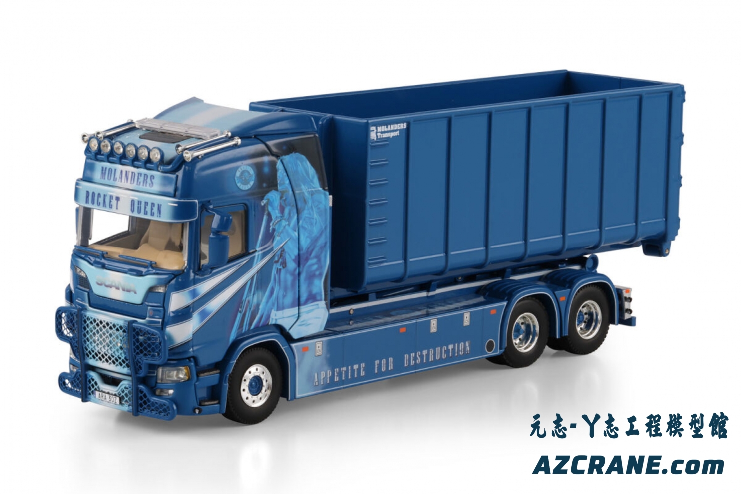 WSI 01-4882 SCANIA S HIGHLINE CS20H RIGED TRUCK WITH HOOKLIFT SYSTEM 6X2 TAG AXLE + 40M3 CONTAINER Molander