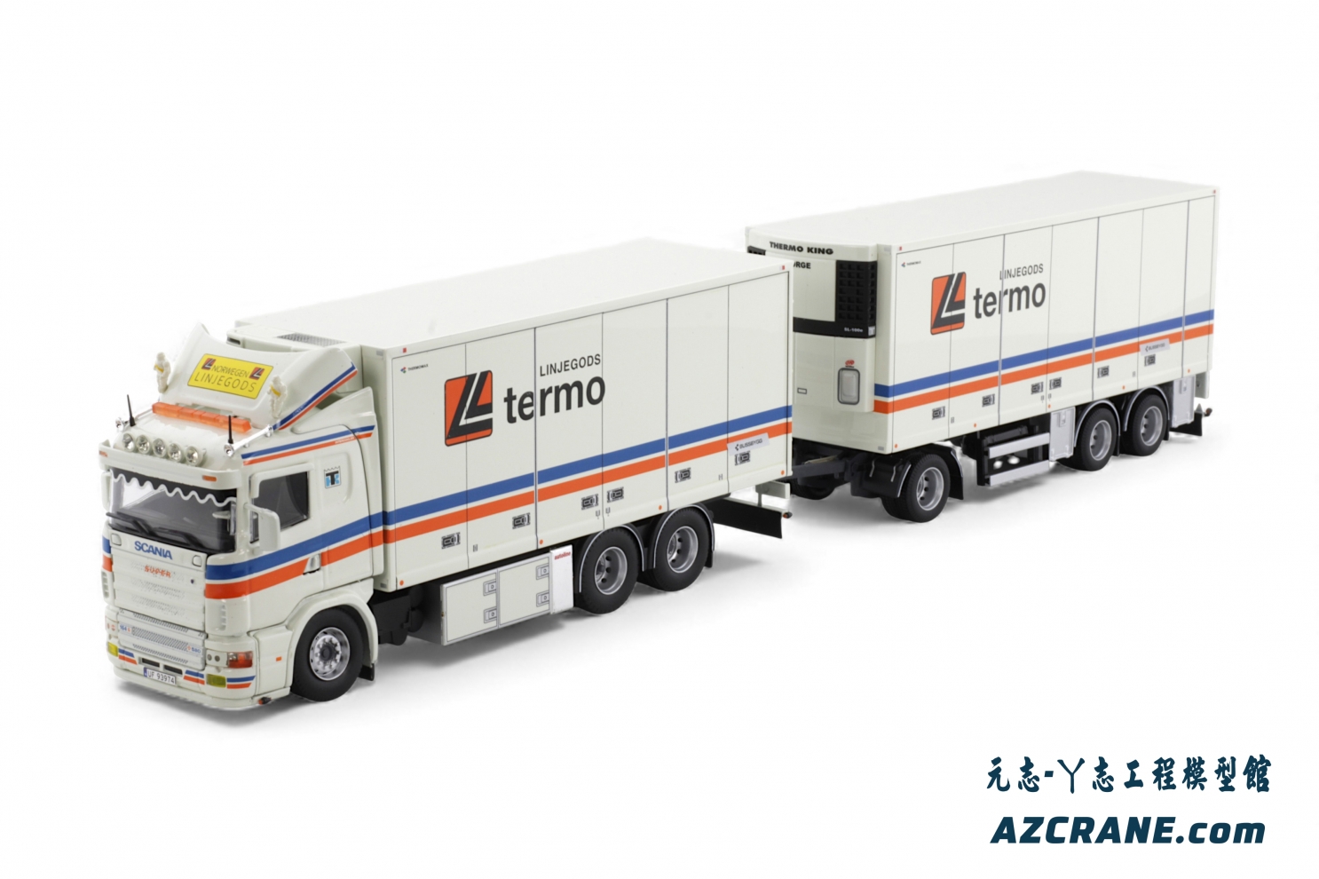 Tekno 86459 Scania 4-serie 164-580 motorwagen met 3-assige aanhanger Linjegods