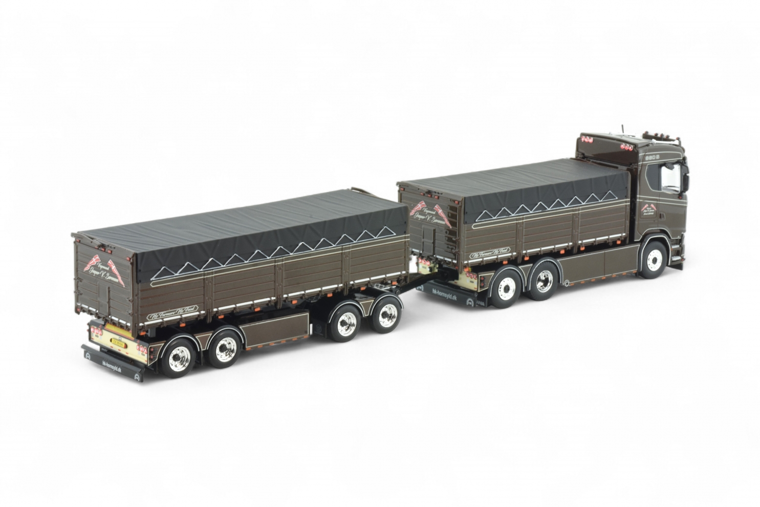 Tekno 86010 Scania Next Gen S-serie Highline motorwagen met aanhanger met resin bakken Jesper V. Sorensen