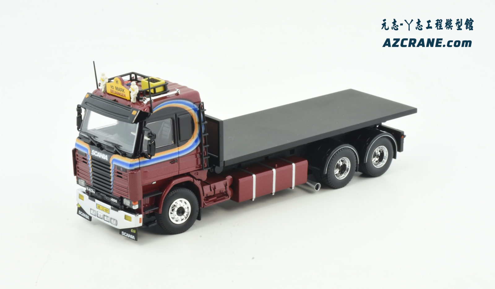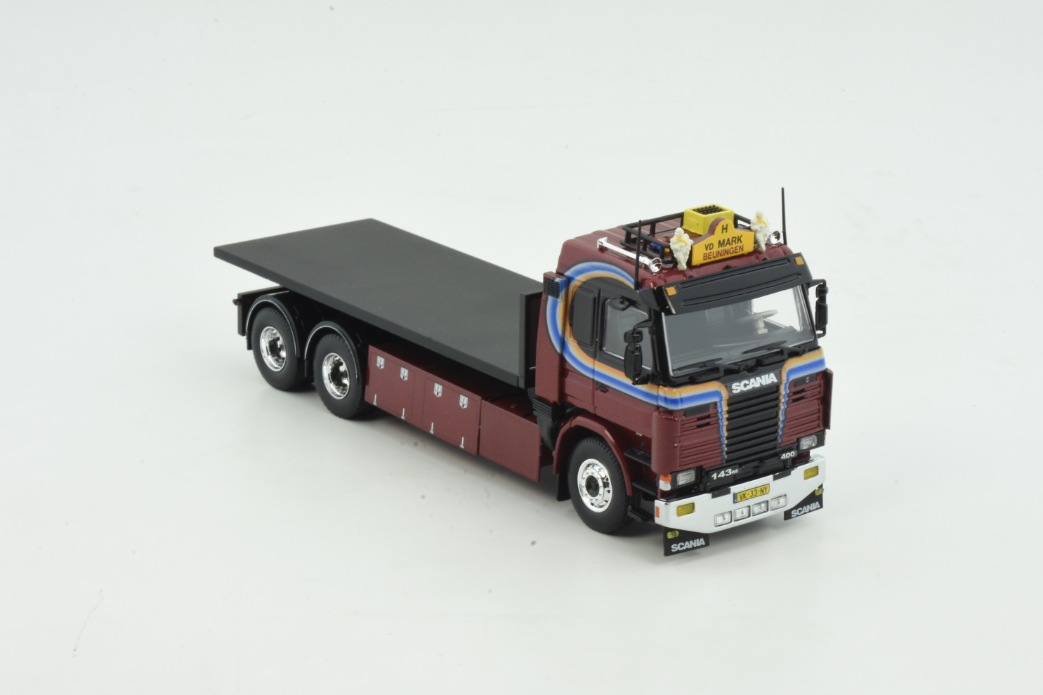 Tekno 88708 Scania 143 Topline met NCH systeem en flatbed Patrick van der Mark
