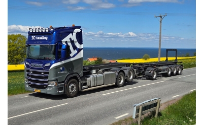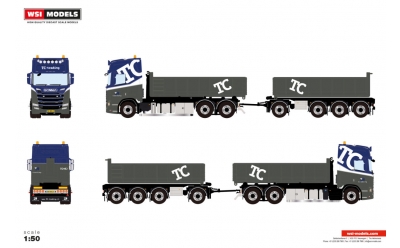 WSI 01-5140 SCANIA R HIGHLINE CR20H RIGED TRUCK WITH HOOKLIFT SYSTEM 6X2 TAG AXLE RIGED TRUCK DRAWBAR WITH HOOKLIFT SYSTEM - 4 AXLE + 15M3 CONTAINER TC-Trading
