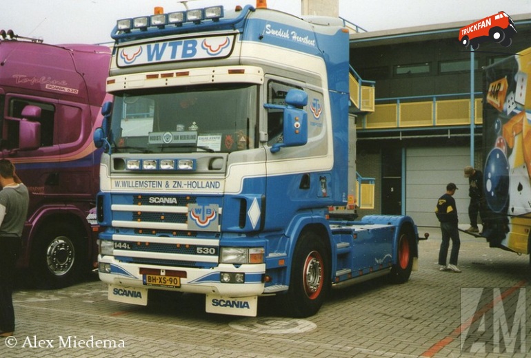 Scania 144L 530 4x2 Tractor with 3-axle curtainsider trailer