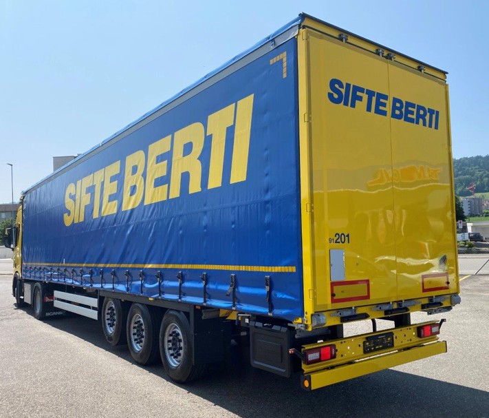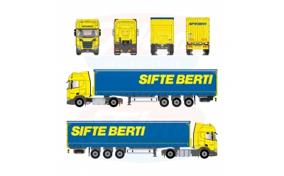 Tekno 91209 Scania NGR Highline 4x2 with 3-axle sailing semi-trailer Sifte Berti
