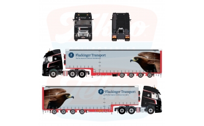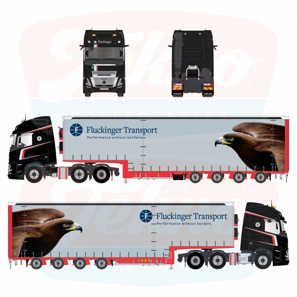 Tekno Volvo FH Aero Globetrotter XL 6x2 met 4-axle Meusburger trailer Fluckinger T90177