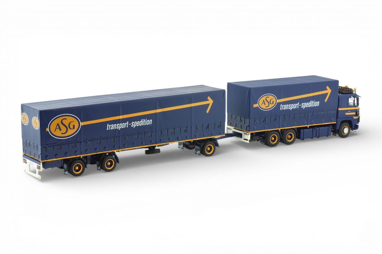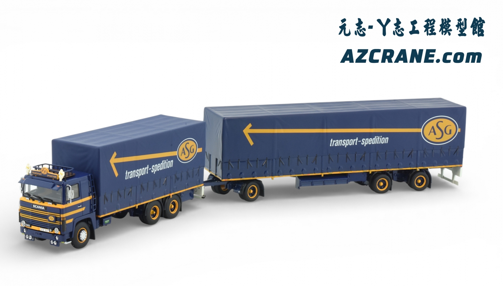 Tekno 86006 (樹脂)Scania 141 motorwagen met 2-assige Zweedse (resin) trailer - Verpakt in luxe ASG giftbox ASG - Sigurdsson