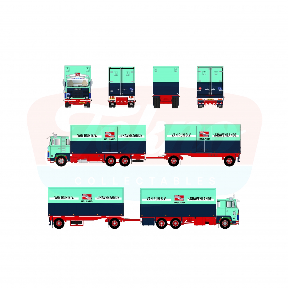 Tekno Scania 141 truck with 2-axle trailer Van Rijn T86470