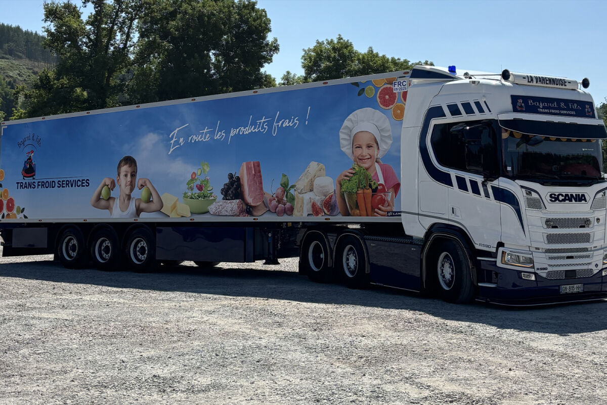 WSI 01-5226 SCANIA R HIGHLINE CR20H 6X2 TWIN STEER REEFER TRAILER - 3 AXLE Transports Bajard et Fils
