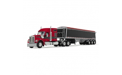 FirstGear Kenworth W990 with 76" Mid-Roof Sleeper & Lode King Distinction Hopper Trailer Red/Black F60-2176